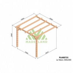 RÉSUMÉ DE CARACTÉRISTIQUES: DIMENSIONS: 300×300 cm (longueur x profondeur) STRUCTURE: adossée RÉSISTANCE: élevée MATÉRIAU: bois lamellé-collé TRAITEMENT: non, nécessaire appliquer peinture lasure MONTAGE FACILE: en environ 60 minutes LIVRAISON: incluse La pergola bois adossée LE MANS est fabriquée p
