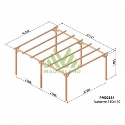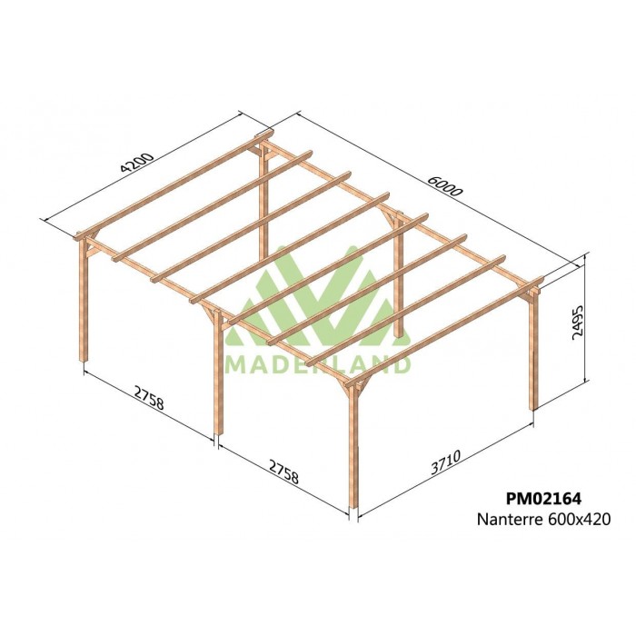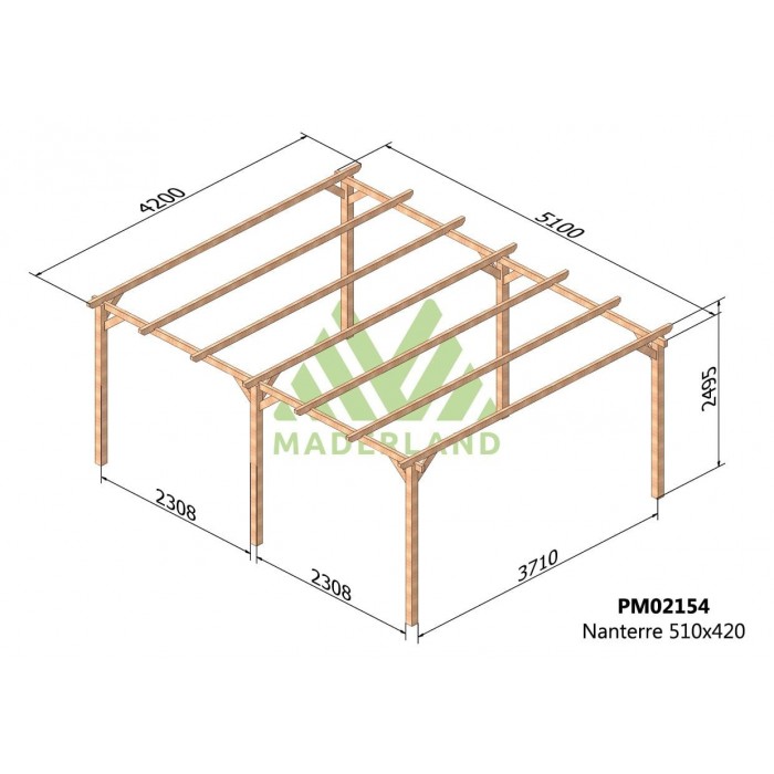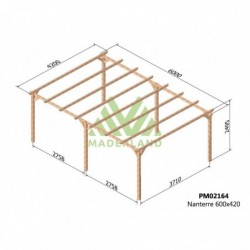 Le carport en bois NANTERRE est fabriqué par Maderland en bois massif traité provenant du nord de l’Europe, où la croissance lente garantit de meilleures propriétés mécaniques face à toute éventuelle adversité, améliorant la résistance à la flexion statique, à la compression et à la traction.