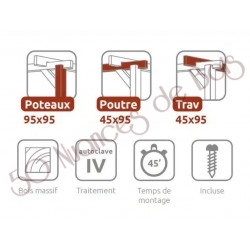 Ce carport pour voitures est livré avec sa visserie spécifique pour le bois et un manuel de montage très facile à comprendre. Il peut être monté en environ 45 minutes à deux personnes.