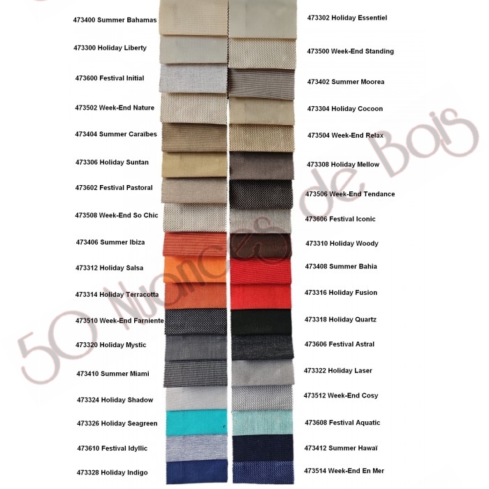 Couleur des tissus au choix, 2 photos = 2 types de tissus : imperméable et déperlant