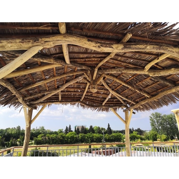 La Paillote : - La structure : en Robinier (acacias) très dense et dure, naturellement imputrescible.