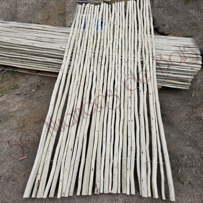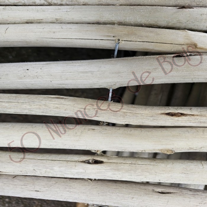 Rondins en Eucalyptus reliés par un fil en métal souple parfait pour réaliser un ombrage sur votre pergola, couvrir une tonnelle, ou réaliser une décoration pour cacher un mur ou créer un brise vue