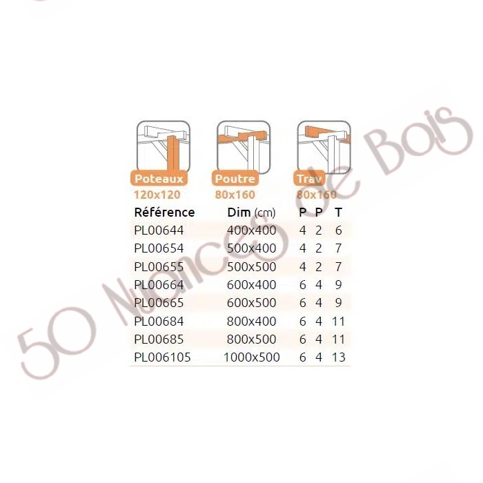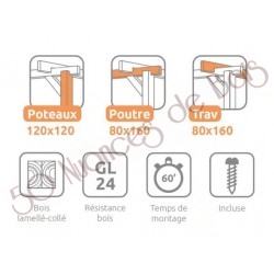 La quantité de poteaux, de poutres et de traverses peut varier en fonction des dimensions choisies.