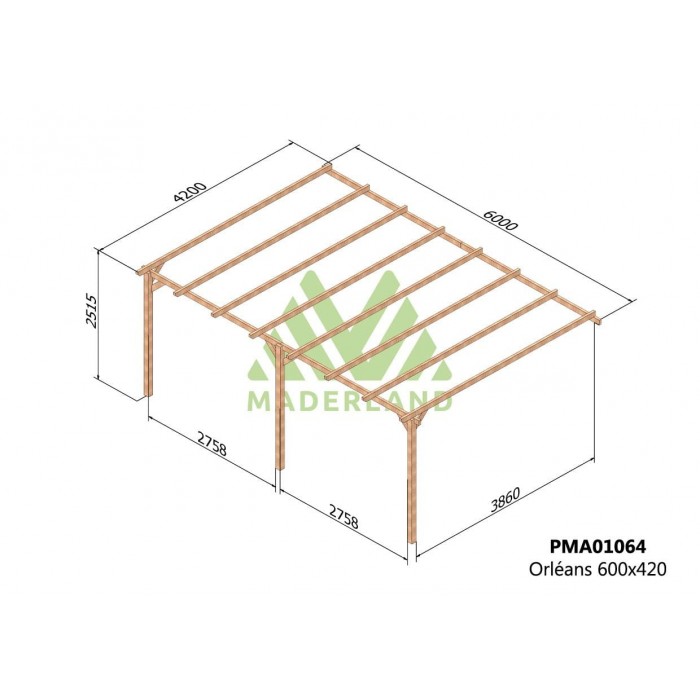 La pergola bois adossée ORLÉNAS est fabriquée par Maderland en bois massif traité provenant du nord de l’Europe, où la croissance lente garantit de meilleures propriétés mécaniques face à toute éventuelle adversité, améliorant la résistance à la flexion statique, à la compression et à la traction.