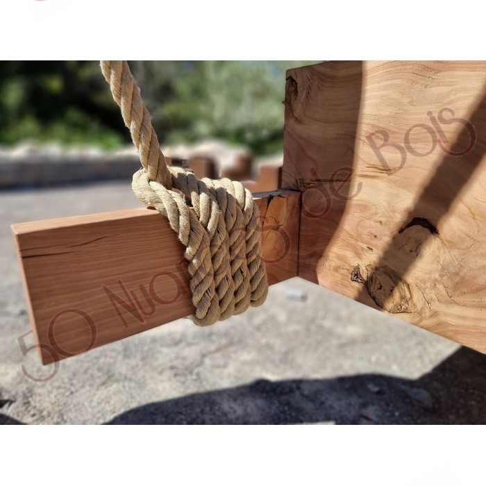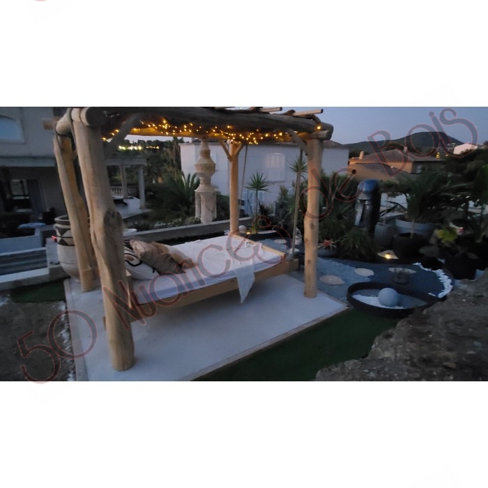 - La structure : en Robinier (acacia) très dense et dure, naturellement imputrescible. Sommier en bois massif traité pour l'extérieur
