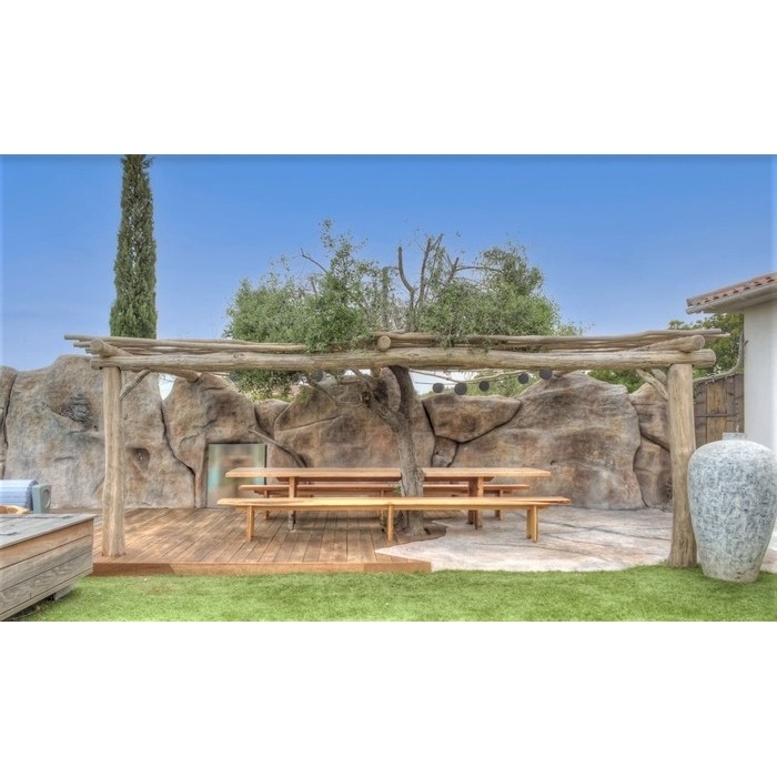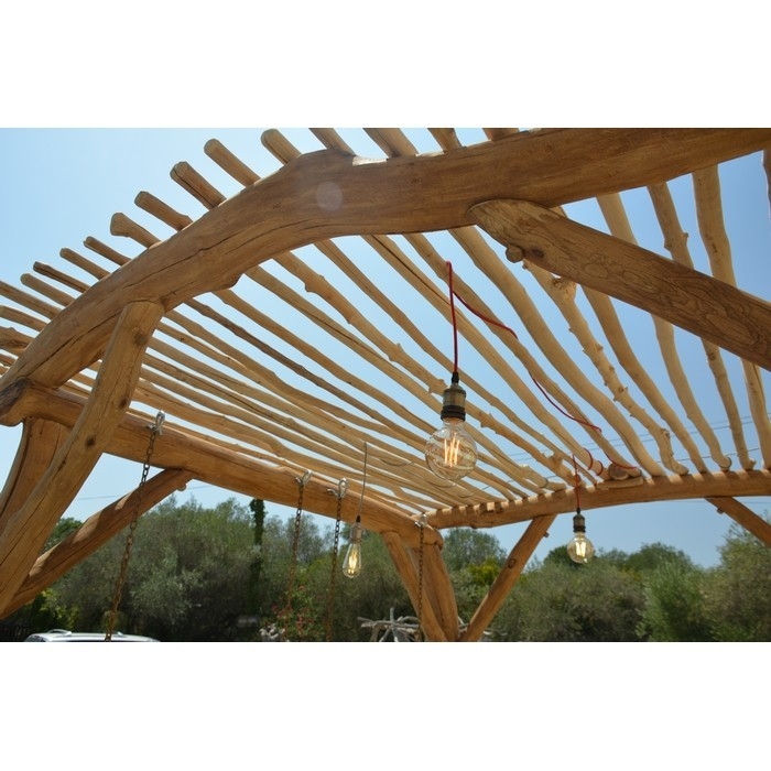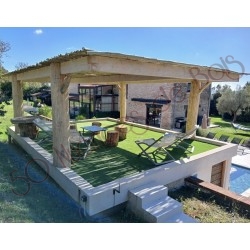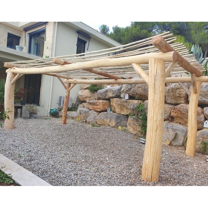 - La couverture : en branches d'eucalyptus (ne contribue pas à la déforestation) - Espacements entre les branches 5/8 cm. Débordement de 15 cm de chaque côté de la pergola