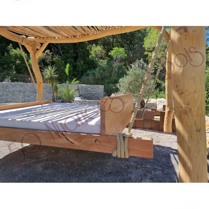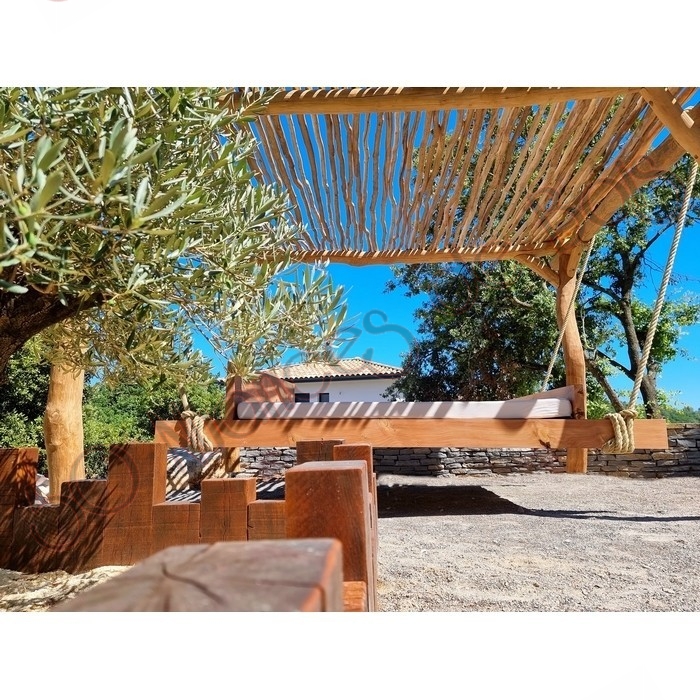 - La structure : en Robinier (acacia) très dense et dure, naturellement imputrescible. Dimensions au choix, sommier en bois massif traité pour l'extérieur