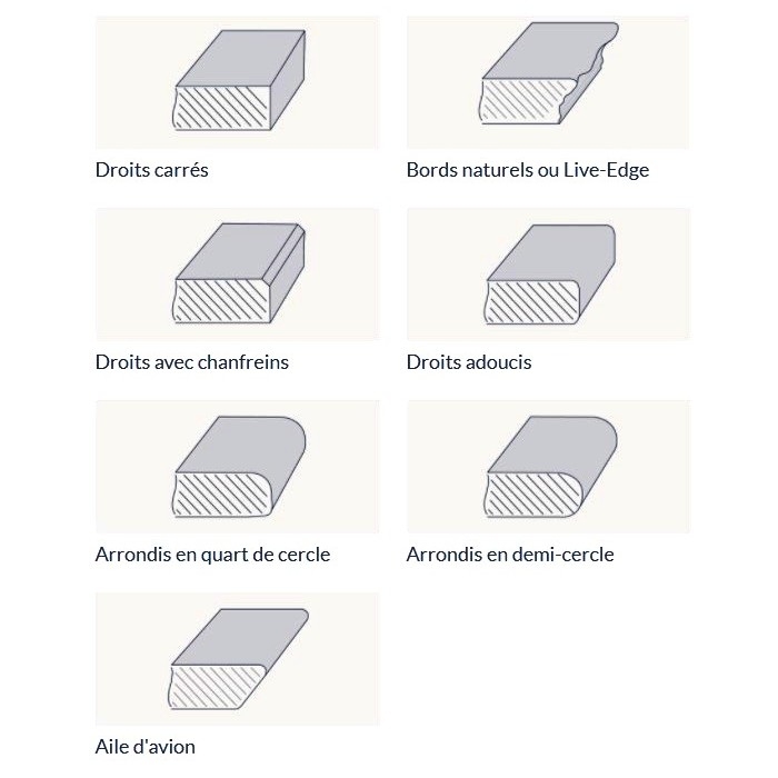 Lorsque vous choisissez une épaisseur, il est possible qu'il y ait une variation de quelques millimètres en plus ou en moins. Nous travaillons exclusivement du bois massif dont l'épaisseur varie en fonction du rabotage.