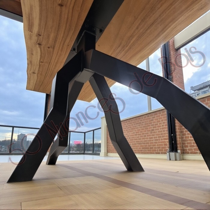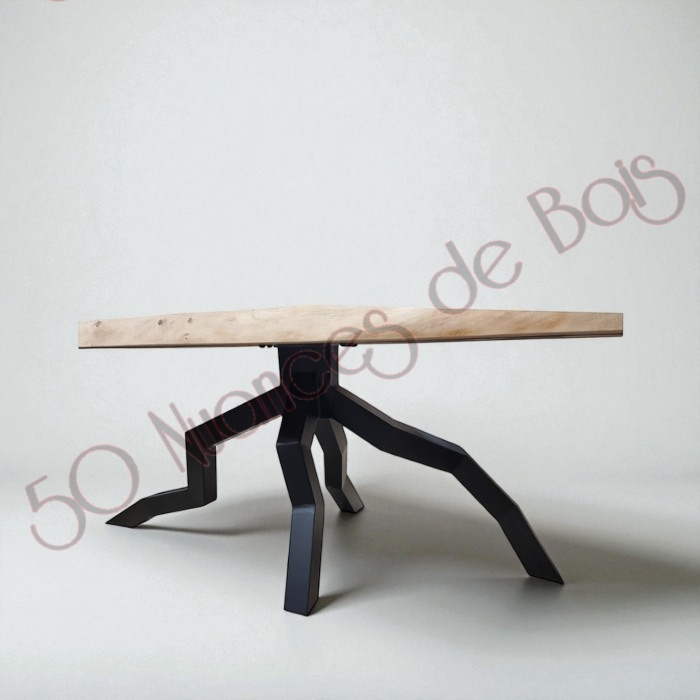 Table en Suar d'intérieur "La Tarentule" avec son pied métal original thermolaqué noir mat